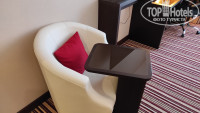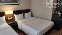 Наш номер 239 оказался просторным и очень симпатичным. Внутри нас ожидали две больших, фактически двуспальных кровати, рабочее место с благородного цвета столом и эргономичным стулом, подставка для багажа, холодильник, чайник с набором для чая и кофе, платяной шкаф, телевизор.