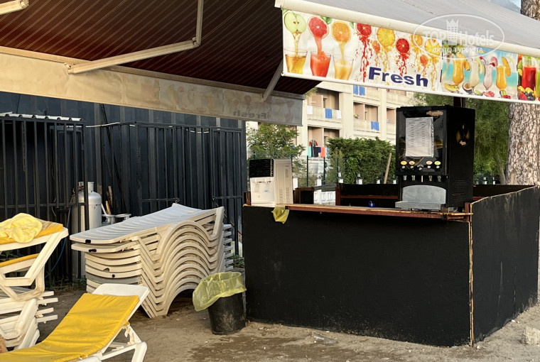 Бар у бассейна-грязный и немытый, антисанитария полная.По коктейлям, вину и пиво все тоже самое.В кулере с водой слизь и пахнет тиной.С 15:00-17:00 были лепешки (они вкусные), арбуз ,макароны, зелень и овощи.