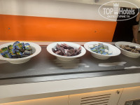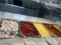 Подумала, что закрою глаза на номер, если в остальном все будет хорошо. Когда пошли на завтрак, разочарование было еще больше. Зелень( укроп, петрушка , салат и прочее зеленого цвета) вообще отсутствовала!😳 Из свежих салатов только резаный помидор,огурец и капуста. больше ничего!!!( фото завтрака полностью приложила). На завтрак нет никакой выпечки! На обед и ужин : курица, картофель фри, рис, полуфабрикат в виде котлетки, курица. Выбора нет - бери, что дают. Из фруктов только арбуз,сливы и подгнившие апельсины.В « ресторане» очень жарко, очередь за едой, посуда грязная, которую приходилось протирать салфетками. Каждый день одно и тоже, но голодными не были. Кофемашина за 2 дня ломалась 3 раза, когда я хотела налить кофе. Официант открывал кофемашину ключом, нажимал какой-то рычажок внутри и кофемашина начинала работать. В кофемашине не все кнопки рабочие.