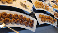 Отдельно хочу отметить ЧИСТОТУ в зале (уборщики постоянно ходят, убирают, при этом незаметны), чистоту на зонах раздачи, в зале всегда несколько человек, которые следят за выставлением блюд, чистотой зоны раздачи, наличием посуды (ее всегда достаточно). И еще на зоне раздачи все блюда всегда оформлены, украшены, десерты – это вообще отдельная песня, я нафотографировала часть) Видно, что делают все с душой, продумано.