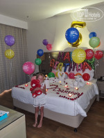 Заселение:Приехали в отель в 11ть утра ,нам одели браслеты ,(номер был не готов,ждали до 15.00 ) показали где можно переодеться и мы ушли в зону бассейна.Накупались ,нас накормили обедом ,(спасибо за приятный бонус;,)в три дня дали номер.Номер у нас был большой 65 кв(как и бронировали)чистый,уютный ,отличная шумка,плюс учли наши пожелания по кластеру .Территория прекрасная ,питание на любой вкус,персоонал все умнчки -все стараются.Большое спасибо Сабине ,учла все наши пожелания ,и огромное спасибо Насте за организацию дня рождения ребенка!!! И в целом спасибо за помощь ,в любых вопросах-спазу получали ответ;Много писать не буду, нам все понравилось!!!