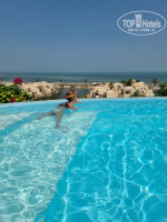 Отдыхали две недели ,в этом замечательном отеле .Семья четыре человека ,двое взрослых и дети 4е и 6ть лет .Очень много было переживаний о погоде ,но всё очень даже отлично.Днём с 12ти до 16ти -да,...жаришка -идеально проводить это время в бассейне (если не уходить в номер) Утром отличное море -нет жары и вода комфортна,а вечером она достаточно горячая (но купаться можно)