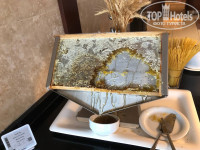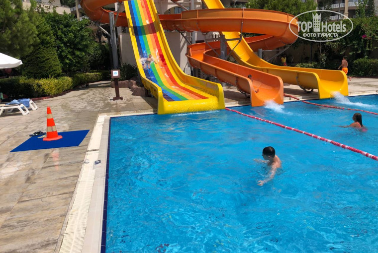 ПИТАНИЕ: ультра все включено. Воды и напитков много по всей территории (газировка в бутылках, кофе/чай, молочные коктейли с разными вкусами). Постоянно работает какой-то снек-бар или ресторан, где можно поесть. В определенные часы у бассейна делают бургеры или вкуснейшие вафли, выставляют холодильник с мороженным. На завтрак я себе например не много чего мог выбрать, но обед и ужин на высоте - много разного мяса, было даже соте из мидий. Много десертов, фруктов (черешня, дыня и арбуз (несладкие правда), персики, яблоки, груши), на ужин в ресторане можно съесть даже мороженое, даже мед в сотах был. В лобби-баре вечером живая музыка - играет женщина на фортепьяно. Дети через день после начала отдыха слегли с животом и температурой, старший за день оклемался, а вот младшему дважды ходили в аптеку за лекарствами (противовирусные и жаропонижающие + для от боли в животе). Но связываем это больше с акклиматизацией и водой из бассейна, которую наш мелкий нет нет, да случайно хлебнет. Массовых жалоб в отзывах и самом отеле не встречал.