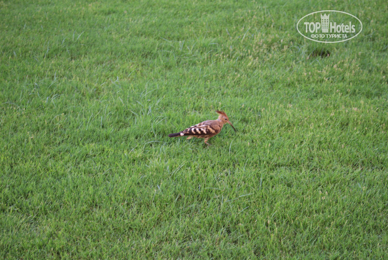 Дальше мы направились на море проходя по территории отеля были приятно удивлены чистотой и ухоженностью отеля. Увидели птичек Удод, они на свежескошенной траве в основном находятся, в поисках пропитания. По всей территории отеля имеются зеленые-садовые скульптуры в виде животных. Которые, конечно, радуют своим изяществом и красотой. На территории отеля очень много зелени…