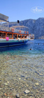 ЭГЕЙСКИЕ ОСТРОВА (9.00-16.00) – незабываемые впечатления! Забрали из отеля посадили на 2-х этажное судно. На корабле были почти все русские (четверо тихих турков и англоязычная пара). Мы выбрали место для лежания под тентом. Красивая музыка, прекрасные виды, напитки (безалкогольные) и чувствуешь себя по-королевски. На обед бесплатно – куриная грудка, макароны в томате с приправами, салат, батон. Три вида сока, газировка сладкая в любом количестве. Дораду брали за 8 евро (дешевле, чем везде). Было 4 остановки с купанием примерно по 1 ч., церковь с ленточками желаний.