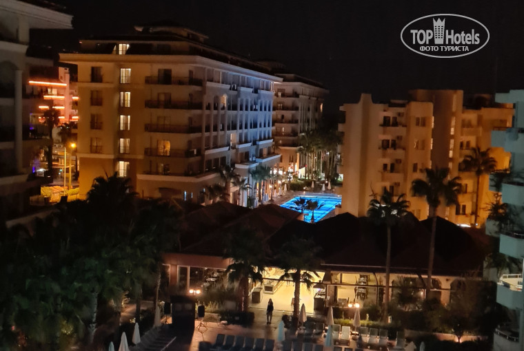Большая. Зелёная. 3 бассейна, куча детских площадок. Есть магазин, хамам, спа, ресторан и куча баров и кафе.