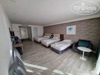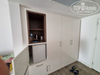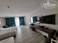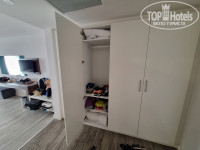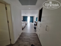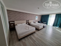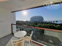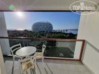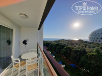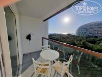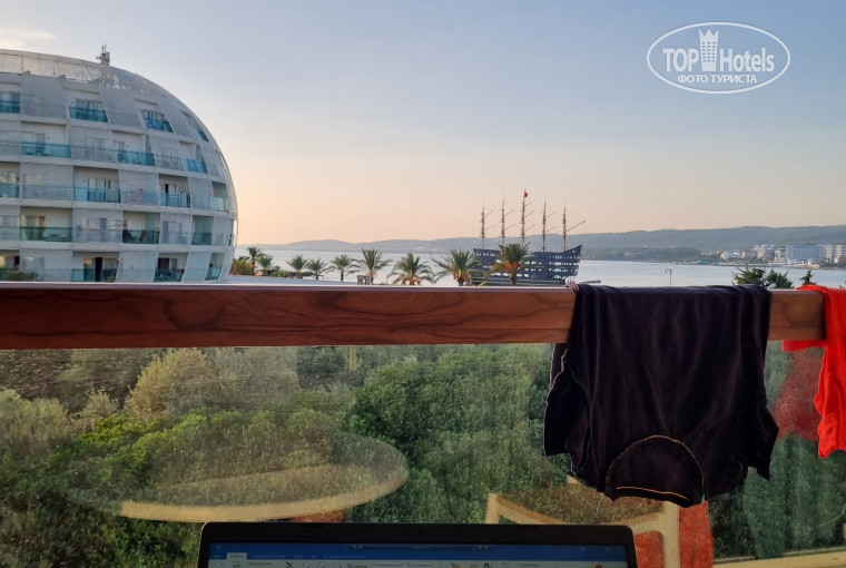 2. Номер. Он был предоставлен в блоке В, до которого нас доставили из блока А на машинке. При входе в номер, сразу заметили, что номер плохо убран, а в холодильнике была только вода. Днем, пока мы были на пляже, холодильник пополнили газированными напитками, а на столе была фруктовая тарелка и бутылочка вина. Сам номер чуть больше 30 кв м, в котором 1 двуспальная кровать и 2 односпальные. Также есть раскладное кресло. Номер был с видом на море на 4м этаже. Ремонт на 5 из 10. Всё функционирует, но старое. Периодически пахло канализацией. Балкон большой, хватает места для отдыха и сушки белья. Кровати (матрасы) слишком мягкие. Телевизор работает, но мы его не смотрели.