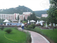 Территоря отеля большая.Зеленая. Загорать приятнее на шезлонгах под соснами, но места там люди занимают с 6-7 утра. Вообще, с б/платными лежаками дело обстоит не очень хорошо, т.к. желающих на них разместиться намного больше, чем самих лежаков.