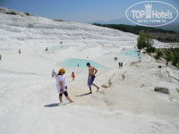 Экскурсию брали через улочку, при выходе из отеля налево. Агенство на углу, между магазином текстиля и кафе. Турагент Иван. На русском говорит с небольшим акцентом. Рекомендую. Проверено - никакого риска.(помещу фотографию для надёжности - сама, когда читала отзывы, пыталась запомнить имена и местонахождения, в итоге не запомнила ничего.) У отельного гида путёвка минимум на 15 долларов дороже. Единственное - берите с собой воды побольше и лиры на входные билеты. Вход в Паммукале стоит 20 лир, это 13 баксов. А гид в автобусе ссылаясь на отсутствие сдачи в кассе и что баксы могут не принимать, продаст вам его за 15. Бассейн Клеопатры не посещали - слишком в нём много народу бултыхается.