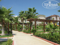 Территория отеля не очень большая (опять же, сравнивая с Сафиром 4*), не очень зеленая - но отель новый, так что, в будущем, думаю она будет покучерявее. На территории три бассейна – большой, детский с навесом от солнца и крохотной горочкой – это для самых маленьких, так же бассейн с горками. Горки, нужно отдать должное, отличные! Работают два раза в день – полтора часа утром с 10.30 до 12.00 и вечером с 15.00 до 16.30. Там мы отрывались по полной! На территории так же есть гамаки, где можно полежать в тенечке, вдоль пляжа стоят плетеные лежаночки с подушками и столики – днем там жарковато, но ближе к вечеру, можно посидеть-выпить, так же есть бунгала с легкими занавесочками. Пляж приятный, песочек и всё такое... Камни в море только в левой части пляжа. Места на лежаках, всегда можно было найти - в какое время бы ты не проснулся. Правда, предприимчивые немцы занимали полотенцами лежаки на весь день и уходили в отель, но при желании - можно было убрать эти полотенца и разместиться на понравившемся месте - все равно за своими полотенцами они вернутся только к вечеру. Но у нас такой необходимости не было. Пирса в море нет - это небольшой минус... Привыкли уже, что можно и с горки на пирсе понырять и позагорать там - лишнее пространство для лежаков и подушек. Развлечения на пляже как везде – катамаран, парашют, банан, ватрушки всевозможные, лыжы. Справа от пляжа есть островок – за 15 евро (можно собрать несколько человек) на него могут отвезти на моторке и забрать когда вы пожелаете. Некоторые и сами на катамаранах плавали туда. На острове интересно – есть своя жизнь, высохшие соленые маленькие лужицы, естественные маленькие аквариумы с рыбками, водорослями и ракушками. На противоположной стороне интересные маленькие скалы, омываемые прибоем. Красиво. Можно туда (на остров) съездить для разнообразия отдыха. Слева от нашего пляжа – небольшой полуостров. Туда тоже можно прогуляться… В общем, территория + пляж + море – оценка 5 с маааленьким минусом за отсутствие пирса.