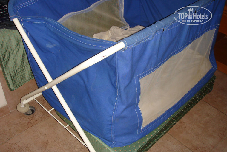 Мы ездили с грудным ребенком только начавшим ползать. Сразу попросили детскую кровать для ребенка. Вначале про нашу просьбу забыли. На третий день мы все таки добились детской кроватки, нам привезли такую тележку на которой развозят белье по номерам, в ней в стенках была вшита сетка. Типа это такой манежик. На дне лежал матрас размером больше дна тележки, лишнее было подвернуто так дно этого сооружения получалось неровным. Русский человек везде найдет выход, тележка была доработана с помощью подушек от дивана что б ребенок не ударился об железяки, и матрас мы подвернули поаккуратнее, так что тележку все таки удалось использовать для сна ребенка. Но вообще то в отелях обычно принято предоставлять грудным детям для сна детские манежи, а не тележки.