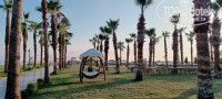 территория, конечно небольшая, зелени не много, но есть травяная лужайка с пальмами. за зеленью не сюда.