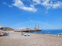 Есть пирс, он весь в лежаках. Вечером с него кормят и ловят рыб)) Мелкие рыбки могут днем подплывать ближе к берегу и кусаться. От пирса каждый день ходит кораблик. 4-часовая прогулка к трем островам и дальше по бухтам, с 10 до 13, стоит 25$.
