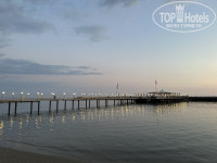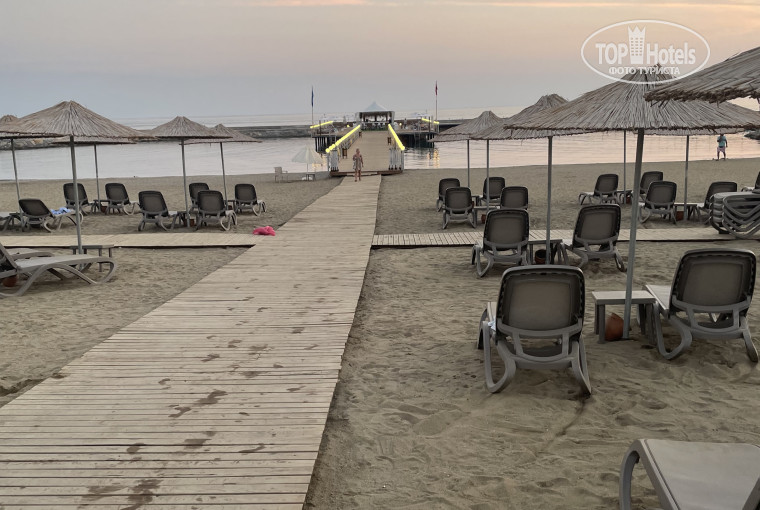 Пляж. Нам не понравился вообще. Из за пирса и волнореза из моря сделалась лужа. Волн нет от слова совсем. Вода стоячая. Немного спасают ситуацию лестницы с пирса. Но мы ходили на соседние пляжи и загорали на полотенцах, но на пляжах соседних отелей много народа.