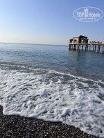 Море: шикарное! Прозрачное, теплое, глубоко почти сразу. Вход мелкая галька, дальше песок. В воде плавают рыбы и 1 раз видели кальмара. Вечером туристы приходили кормить рыбок с пирса. Мы купались только с пирса.Там спокойно, тихо, можно поспать. В 9 утра все лежаки на море уже заняты, места есть только на пирсе и то не всегда. На пирсе есть бар, но под конец отпуска его уже закрыли.