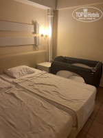 номер был чистый и просторный, да мебель не первой свежести, матрасы хорошие, кондиционер слабенький, но жарко не было, сантехника исправная, принесли по запросу детскую кроватку сразу же)