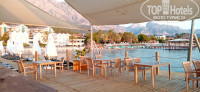 И так ,начитавшись плохих отзывов ,мы рискнули и поехали( устроила цена ,что лукавить,цены в этом году зашкаливают).В отель приехали в 13 часов,браслеты,анкеты идите в ресторан (про него потом),поели,заселили.Номер первый этаж,но по сути это второй этаж,вид на соседний отель и его ресторан и амфитеатр. Куда то переселятся не стали,мы в номере практически не бываем. Шум от соседнего отеля нам не мешал,мы много плаваем,много ходим,куда то ездим т.е.засыпаем хорошо. В номере очень хорошо работал вайфай (бесплатный),т.к.номер над ресепшеном,а вот в других местах это кошмар,постоянно перебивал соседний отель. Сейф бесплатный,холодильник работал ,при заселении две бутылочки воды и два пакетика сока,все !!! Дверь на балкон не закрывалась на замок,да и ладно,это сейчас кажется мелочью. Две односпальные кровати накрыты одной простынью,ну как так. Шкаф для вещей вместительный ,полочек достаточно.Розетки,их надо поискать в номере,за шторой,за кроватью.Освещение очень слабое,если включить все,все равно будет полумрак.Санузел,нигде ничего не текло,все смывалось,уже хорошо,хотя кнопка смыва унитаза была отломана,но приспособились ее нажимать.Два банных полотенца ,три для лица,одно для ног.Фен есть,рабочий. Два диспенсера ,один у раковины,другой у ванны ,с какой-то жидкостью и один,уже начатый рулон бумаги. Уборки нет совсем,индикатор чистоты пола ,мои носки в которых я ходила по номеру.Через день утром вижу горничную и прошу туалетную бумагу,показывает мне ,что на тележке ее нет,но мадам не беспокойтесь будет.Возвращаемся с пляжа,вместо бумаги нам принесли еще два банных полотенца,пошли на ресепшен,горничная говорят ушла будет завтра ,взяли бумагу из туалета у ресторана. День четвертый,утром звонок на ресепшен с просьбой вынести мусор из урн и пепельницы (муж курит на балконе).Приходим с пляжа ,нам принесли еще два полотенца.Посмеялись,звоним опять с теми же просьбами,возвращаемся с пляжа перед ужином,нам принесли два пододеяльника, мусор как стоял так и стоит.В итоге у нас на двоих было 10 полотенец ,4 пододеяльника, пакеты с мусором выставили за дверь,пепельницу сами мыли,бумагу добывали сами ,как оказалось не одни мы этим грешили. За 8 дней ни разу не было смены белья,полотенец,ни чистилась сантехника ,ни мылись полы. Ресторан ,такой грязи давно в общепите не встречала.хорошо ,что стаканы бумажные. В отеле 5* ,нет на завтрак хорошей выпечки ,на серверовке если что-то закончилось,то оно не пополняется,да же не буду описывать все недостатки,есть все предыдущих отзывах,поверьте все так. Полотенца пляжные,старые вытертые,рваные,но кажется стиранные. Во всем отеле я нигде не нашла часов,да же на ресепшене.Ну к примеру не хочу я брать мобильный телефон на пляж,но время мне надо как то знать,первый раз такое в отеле ,да еще и 5*. Чайный домик,заведение хорошее,вкусный кофе варят,но когда я увидела раковину в которой моют чашки кофейные,грязная ,на ней висят какие то тряпки,которыми они столы протирают,то чашки кофейные,лучше стаканчик бумажный. Отель ,само здание ,хороший и удобный,нет ощущения,что две территории.Пляж и пирс неплохие,лежаки всегда находили,во сколько бы ни пришли. Мое мнение,что отелю нужен ремонт и смена всего персонала.