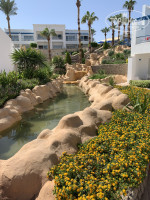 Отель достаточно большой, со спусками, о чем писали многократно, можно перемещаться на гольфкаре, что до точно удобно, если надо с пляжа на обед, ходить по 40С - тяжело. 4 бассейна, 2 больших -в середине, один небольшой при входе в отель слева и такой же возле рыбного. В конце нашего отдыха верхний большой бассейн закрыли и огородили, нас сказали-будут ставить горки.По поводу персонала и чаевых-не могу сказать, что все требовали их. В номере мы оставляли раза 2 по 1$, при этом нам делали сердце с лепестками еще до чаевых, пожелания дополнить средства гигиены-выполнялись очень быстро, да в номере полноценно убирали не каждый день, но притензий по уборке у нас не было. На пляже за формальные чаевые- делали легко коктейли, которые были призовыми в конкурсах, и в целом очень старались.