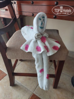 Номер большой, чистый , есть все необходимое. Удобные матрасы и подушки , белоснежное белье . Сейф , TV с русскими каналами . Шикарная терраса с столиком и креслами . Очень хорошая косметика. В лосьон для тела я влюбилась, такой нежный и тонкий аромат . Уборка всегда радовала глаз . Хоть я жила и одна , лишние полотенце не убирали . А какие фигурки мне и моим подругам крутил Ислам ))). Ему огромное спасибо за хорошее настроение !