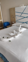 Разместили в номере на первом этаже с террасой. Очень удобно - сразу вышел и в бассейн. Номер чистый, просторный, большая кровать, прекрасно спали втроём) есть небольшой диванчик. Воду и колу пополняли ежедневно, шампунь, гель для душа тоже. Убирались отлично, делали разные фигуры из полотенец.