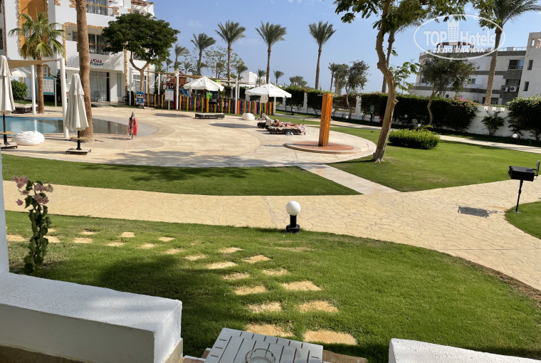Отель с небольшой территорией, где трехэтажное здание отеля окружает всю территорию на которой несколько бассейнов, аква-горки и снек-бар с основным рестораном и лобби-баром.