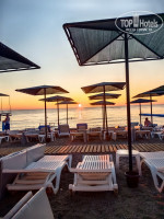 Дорога на пляж занимает 2-3 минуты. Сам пляж оборудован душем с пресной водой, кабинками для переодевания. Дно каменистое, многие отдыхающие использовали коралки. Имеется понтон с лестницей для спуска непосредственно в воду. Вода теплая( в октябре +28*С) и очень чистая. Лежаков достаточное количество.