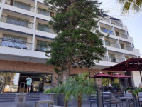 Отель городского типа. Территории нет. Вот совсем нет. И не надо предъявлять по этому поводу претензии. Отсутствие территории заявляется сразу. Терраса отеля выходит на набережную Кемера. Метров через 50 вход на пляж отеля. Это отель для семейных пар либо компаний среднего возраста. Нашей территорией был весь Кемер. До центра минут 10-15 пешком, все улицы -сплошные магазины.
