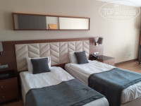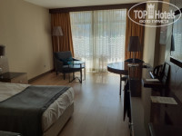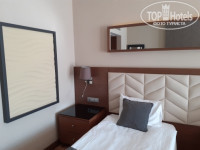 Номер дали на втором этаже с видом на горы и, главное, на Тахталы. Номер большой, просторный, мебель новая. Сантехника исправная. С тапками беда не только в этом отеле. Говорят, что утилизация стала очень дорогой, в прошлом году уже тапок даже в отелях UAI уже не было. Но то, что в ванной ничего не было, кроме дозаторов у умывальника и ванны, конечно, несколько расстроило. Но не очень. Ехали мы в бюджетный отель, необоснованных ожиданий не было. Кондиционирование централизованное, работал кондиционер отлично, и расположен очень удобно, дует в центр номера, не на кровати. На балконе есть сушилка. Полотенца меняли ежедневно, уборка как и во всех турецких отелях - не лучше и не хуже. Wi-Fi бесплатный, в отеле брал хорошо, до пляжа не доставал от слова совсем. Но постоянно требовал вводить логин-пароль. В шкафу есть нормальные человеческие вешалки, полочки, выдвижные ящики. Сейф бесплатный. В холодильнике 2 бутылки воды по 0.5л и 2 маленьких сока. Пополняется только вода. Также ежедневно пополняются запасы кофе и чая.