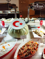 Еды много разной на любой вкус,об этом написано подробно в других отзывах. Очень красивое оформление было блюд и зала на день Турецкой Республики. Были тематические ужины каждый день. Посетили рыбный ресторан Барракуда. Большое спасибо Виктории за отличное обслуживание! Все блюда вкусные,нам понравилось.
