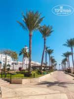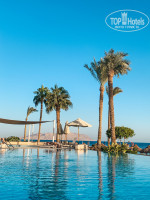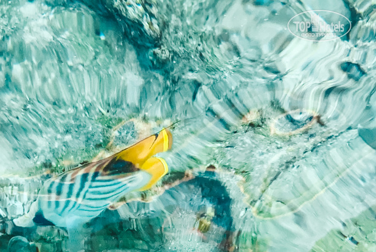 Отель четверка находиться рядом с их же отелем 5 звезд, пешком минут 7, на автобусе, который курсирует постоянно - минуты две. Как только мы утром приехали на пляж, я окончательно поняла, какой правильный выбор я сделала! Честно говоря, изучая фото и видео отеля, у меня возникли опасения насчет пляжа, казалось так, будто он очень маленький, всего лишь небольшой клочок, а по факту это большой и интересный пляж, который негласно даже разделен на зоны - есть нижняя зона с одной стороны, где отдыхают в основном семьи с грудными детьми, так как там есть небольшая кромка песчаного дна, если часть пляжа на возвышении, с которого можно любоваться морем, островом и панорамой и есть еще дальше продолжающаяся пологая нижняя часть пляжа достаточно большая. Лежаков всегда хватало всем и было много свободных. Понтон совсем не длинный, как, например в соседнем отеле, что тоже плюс. Риф просто изумительный!!! Выше всяких похвал! Мы ездили на экскурсии и на яхте и в Дахаб, который считается меккой мирового дайвинга, так вот наш отельный риф показался мне намного красивее и гораздо более густо населенным, нежели рифы, на которые мы ездили. На рифе отеля была замечена барракуда, семья наполеонов, говорят, что там живет черепаха но, к сожалению, нам ее увидеть не довелось. Ну и великое множество мелких ярких рыбок.