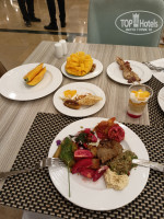 Про еду: голодными вы не останетесь. Это невозможно. Завтрак в главном ресторане начинается в 7.30 и длится до 10.00, впрочем если вы не успели доесть свой завтрак, в 10.05 никто не намекает, что пора на выход. Далее поздний завтрак в баре у бассейна с 10.30 до 11.30, потом легкий обед на пляже с 12.00 до 17.00, а основной обед с 13.00 до 15.00, ужин с 19.00 до 21.30. Как и весь остальной персонал, хочется поблагодарить кухню и шеф-повара, все блюда приготовлены очень вкусно, шеф сам выходит в зал и наблюдает за всем происходящим. Завтраки примерно одинаковы, по желанию, готовят глазунью или омлет, есть два вида каши, кукурузные и овсяные хлопья, молоко, йогурты, добавки в виде кокосовой стружки, изюма, меда, джемов и т.д., также были фруктовые нарезки, овощи и салаты, вторые блюда, разнообразная выпечка, кофе и чай. Обеды и ужины всегда включали супы,курицу (очень нежную), говядину в том или ином виде, жареную рыбу, несколько видов гарниров, овощи и салаты, тортики, пирожные и традиционные египетские кондитерские изделия. Ужины были более разнообразными, блюда в меню менялись чаще, чем на обедах. Один раз мы попали на ужин с морепродуктами, подавали креветки, кальмары и крабы, такие же вкусные, как и в рыбных ресторанах в городе (возможно морепродукты были чаще, так как пару ужинов мы пропустили). Из фруктов всегда были виноград, нарезанная дыня, апельсин, грейпфрут, очень часто финики, агава, иногда груша. Бананов было мало и в основном в нарезанном виде. Раз в три дня подавали вкуснейшие и нежнейшие манго, один раз была хурма, тоже вкусная. Малосъедобными были по какой-то необъяснимой египетской традиции сосиски и колбасы, твердые сыры тоже не очень. Все остальное просто супер: мясо, овощи тушеные, жаренные и на гриле, кальмары и рыба.