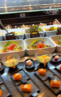 В основном ресторане шведский стол без ограничений, хоть не раз заходи во время обеда или ужина, и снова ешь) мясо кроме свинины было все. Рыба на обед и ужин. В рыбные дни и кальмары и креветки и осьминоги, и даже крабики. Пицца, спагетти, сладости всего много.