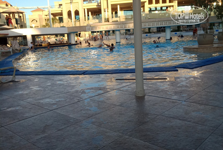 Отели со второй линии делят пляж с отелем этой же сети, который находится на первой линии и через территорию которого нужно пройти, чтобы оказаться на пляже. Единственное отличие в том, что лежаки отеля с первой линии находятся непосредственно в центральной части пляжа и на правом пирсе, а лежаки трех отелей со второй линии располагаются на левом пирсе. Сам пляж довольно небольшой, он как будто находится в лагуне, огороженной с двух сторон пирсами. Благодаря этому даже при сильном ветре там никогда не бывает волн, а вода очень теплая. Вход в море очень хороший, в одной части есть небольшие камни, но спасатели не разрешают по ним заходить в воду и следят за этим. Вся остальная береговая линия это песок, где очень хорошо играть детям. На пляже работают спасатели, которые следят за отдыхающими, причем в самый разгар они стоят у самой кромки воды, а не просто сидят где-то на стуле.