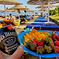 На пляже бар с напитками (алкоголь ,соки, чай, кофе) и кафешка для перекуса . Там выбора еды нет, но голодным конечно не будешь если решишь не ехать в отель на обед