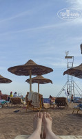 Пляж: небольшой, идти до него минут 5 через дорогу (один из охранников каждый раз вскакивал, когда видел нас, убеждался, что нет машин и тогда разрешал перейти - за заботу о безопасности+) и отель этой же сети. Старые лежаки стоят густо, но их всегда всем хватало. Плетеные зонтики для защиты от солнца также выглядят устало. Спасателя нет. Некоторые участки пляжа очень напоминают склад (кучи черепицы, гора матрасов, лежащий поваленный зонт от солнца). В песке встречаются окурки и мелкие палки, чтобы не пораниться нужно ходить в обуви. Песок ровняется и чистится только на волейбольной площадке. На пляже часто воняло бензином от экскурсионных катеров. Иногда ходили бродячие собаки и их никто не прогонял.