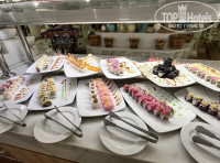 6. Еда. Как я понимаю, для Египта очень хорошо. Надо понимать, что тут не будет как в Европе. Выбор большой. Для любителей овощей - 2 стола с овощами во всех видах - кусочками, с заправкой, без заправки, половинки, даже целые огурцы, помидоры, подкованы капусты итп)) Очень много соусов и заправок. Очень много круп в разных видах. Много выпечки. Мяса не очень много, но говядина и курица в разных видах всегда была. И что-то рыбное тоже. Отдельный стол, где вам сделают пасту, утром отдельный с яичницей. Были даже супы. Разные, на любителя - и супы пюре, и овощные, и бульоны. Для детей отдельный шведский стол, детские тарелки с секциями - просто прелесть. Еще есть отдельный стол со специями и с национальными блюдами. Это интересно и приятно уважение к культуре. Сладости достаточно однообразные на вкус, но очень красивые. Фрукты никакие, может не сезон. Видно, что повара стараются, на ужин то суши, то рулетики какие-то, то красивые закуски порционные. Молодцы.