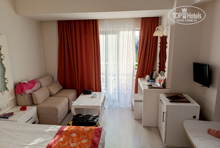 Пляж. Маленький, но места всегда хватало, понятное дело не у воды, но с другой стороны - ближе к бару))) Галька - коралки обязательны!!! Лежаки почти все целые. Если бы свои же не гадили, то был бы чистый пляж, а так, не особо. Большой плюс, что слева свободный пляж метров триста, гуляй не хочу, и плаваешь не как сельдь) Море прекрасное, как и везде в Турции на гальке. Полотенца выдают в спа под депозит, там же можно заменить на чистые, возврат депозита без проблем. Бар на пляже имеется, с музыкой, алкоголем и чаем кофе, плюс бургеры и фри в обед. Фреши и мороженое по 1$