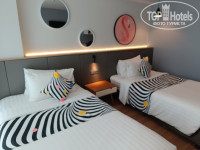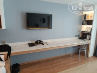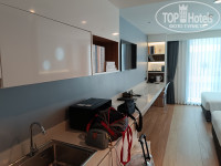 Окна этого номера выходят на соседний отель, а ниже этажом ресторан. Не много шумновато в этом номере. Звукоизоляция тоже "хромает". Мебель, техника, белье принципе не сильно поизношенное, очень все прилично. В номере есть кухонные принадлежности, микроволновая печь, холодильник, раковина, чайник, плита.