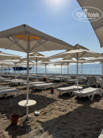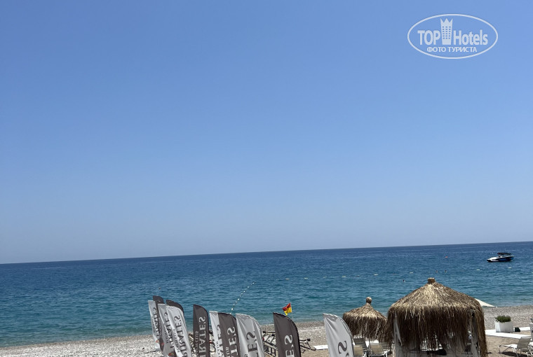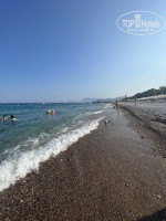 Пляж у отеля достаточно большой, всегда можно расположиться под зонтиком на лежаке, мест достаточно для всех гостей отеля. Вход в воду каменистый, но зайти можно, так же есть пирс на котором есть лестница для входа в воду. Мы отдыхали с маленьким ребенком и заходить в море ему было не очень комфортно, но эту проблему мы решили - на территории отеля есть магазины, в которых мы взяли специальную обувь для плавания. Вода в море очень чистая, виден каждый камушек на глубине.