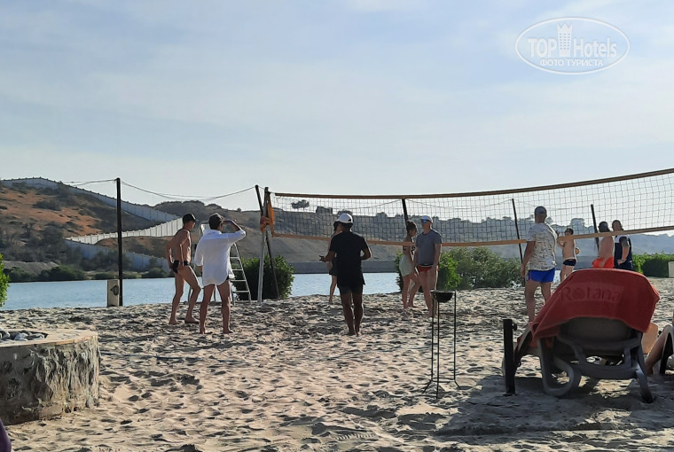 Пляж ШИКАРНЫЙ, место было всегда. Вода в море была + 21 +22. Песок белый, мелкий, сильно не нагревается. Полотенца можно брать и менять на пляже или любом бассейне.