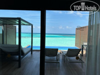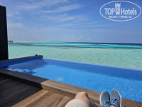 Так получилось, что мы пожили в двух вариантах аквавилл - с бассейном и без. С бассейном - великолепный номер! Большой, есть ванна в самом номере, шикарная кровать, небольшая lounge зона. Снаружи два лежака, кровать и собственный бассейн (примерно 1.8 х 4.5 метра, глубина 90см).