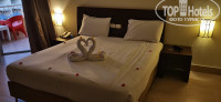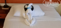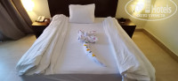 Номер мы брали двухкомнатный. Номер немного "уставший", но довольно уютный. Бельё всё чистое, убирали номер каждый день. Может так часто убирали из-за чаевых, но в любом случае есть табличка для внеплановой уборки, достаточно повесить на ручку двери. Из минусов можно отметить мелкие поломки и старый ремонт в номере. Вилки в розетках не держатся, двери обшарпаные, штанга для лейки дождика в ванной (да, там вместо душа ванная) зафиксирована саморезом. Во второй комнате шкаф без дверец. Но, в целом, уютно. У нас была одна большая кровать и кресло в одной комнате, и две маленькие кровати и диван в другой. Два ЖК телевизора, два холодильника, два балкона. Уборщик делал потрясающие фигурки из полотенец, каждый день разные. Неиссякаемая фантазия. Кроме обычных лебедей, были и крокодил, и дельфин, и даже обезьяна.