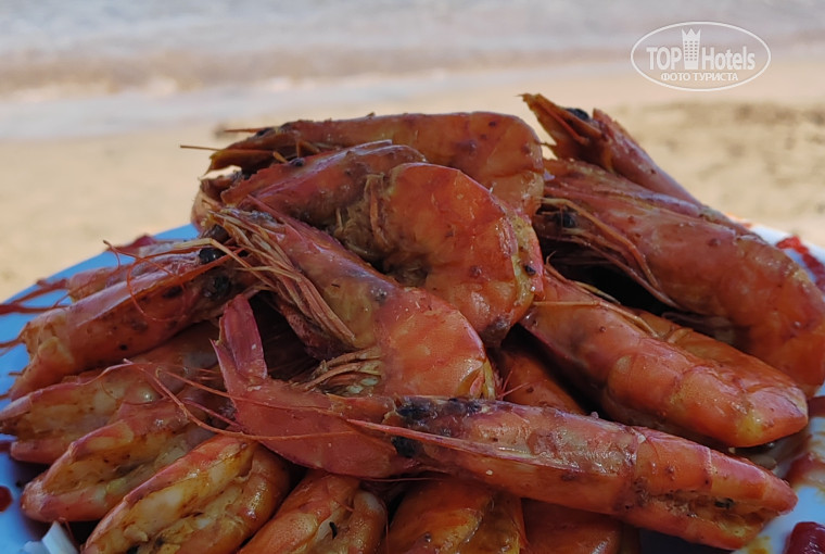 В отеле два ресторана один гриль ресторан мы постояннл там ужинали там более вкуснее, но только ужины, на обед ни разу не сходили так как быди все время на пляже, на пляже перекус картошка фри, котлеты, покупвли креветки 16$ 1кг очень вкусные, море теплое, ветер был небольшой в первый день приезда, вернемся еше раз, буду рекомендовать💪🤩