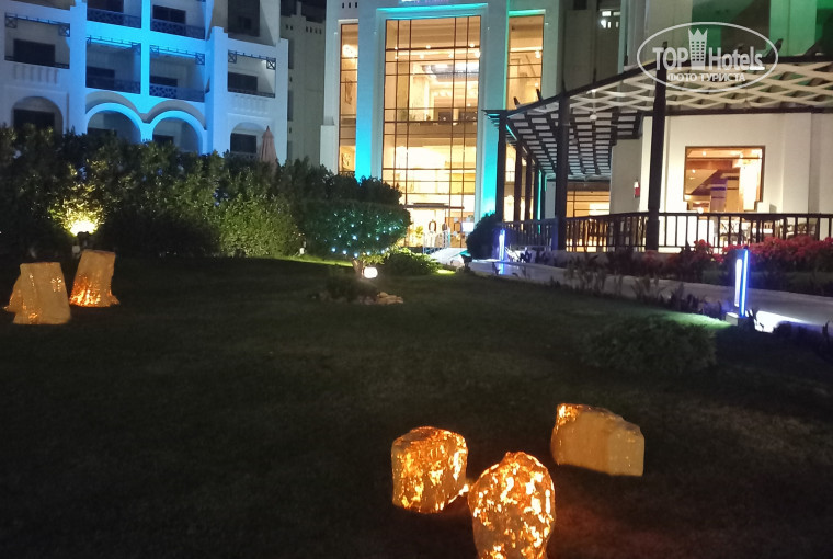 Красивая, чистая, зеленая территория, с вечерней светодиодной подсветкой и иллюминацией. Постоянно всё моют, чистят, убирают.Между отелем и пляжем проложена дорога из брусчатки. Вправо, если смотреть на море, она ведет в никуда, влево проходит мимо нескольких отелей и приводит на довольно красивую набережную. По этой дороге комфортнее и быстрее всего передвигаться, арендовав электромашинку (они разного типа и вместимости). На выходе из отеля есть магазины с сувенирами, продуктами, одеждой, сумками, аптека и даже дьютифри, правда он очень убогий, как по своей сути, так и по выбору, но тем не менее.