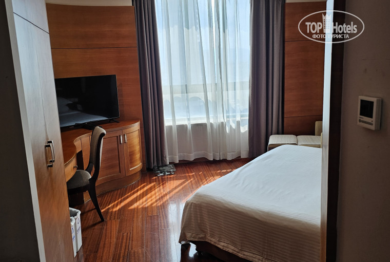 Завтраки: сначала может показаться, что есть совсем нечего особенно после отелей 5* в восточных странах. Но если присмотреться вполне можно набрать на несколько тарелок) Рекомендую приходить на завтрак после 8 утра если нет срочной необходимости. Потому что с 7 утра едят китайцы и их ну ОЧЕНЬ много, не то что стола не найдете свободного, стульчик за общим столом вместе с ними найти бы. Из еды: бывает бекон, но не всегда, блинчики в рисовой лепешке, много всяких булочек на пару( они офигенные): сладкин, с зеленью и без начинки (тарелки паровые стоят в 2 ряда, часто на разных уровнях стоят разные). Есть супы, немного сладкого, типа бисквитов, пончиков, детям ставят иногда земфирюшки, есть хлопья, тосты. Из основных блюд: яичница (часто со скорлупой), рис с овощами, ламша с зеленью, зелень всякая сырая и вареная, картошка, тофу, сладкий суп с клецками, есть одно более сытное блюдо из картошки, моркови и жаренной грудинки( в основ именно сало, а не мясо). Вся еда кстати не острая, достаточно всё вкусное. Из фруктов обычно 2 или 3 вида: арбуз, дыня, апельсины, драконий фрукт, гуава. Кстати спрашивала в других отелях 4*, у многих и половины не было, что было тут.