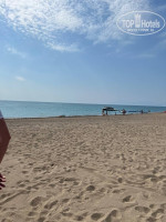 Очень широкая береговая линия, пляж песчаный, лежаков много.