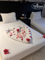 Всем добрый день! Отдыхали в этом замечательном отеле семьей 2 вз и 2 детей 5 лет и 13 лет с 13.03.24 - 23.03.24. Быстрое заселение, номер у нас были Family (853) с двухэтажной кроватью для детей, в одноэтажном бунгало, номера после ремонта, просторные, большой балкон с видом на сад, в номере убираются каждый день, но есть комары (берите фумигатор). Отель очень большой, все чисто, зелено, часть территории на реконструкции, но это совсем не заметно и ни сколько не мешает отдыху. Пляж шикарный, пологий вход , есть небольшие кораллы. Море просто сказка, купались каждый день, даже когда были волны, особый кайф., всегда есть свободные шезлонги, кабАны. На пляже хороший бар, где можно перекусить , фри, ход-доги, фрукты , десерты, пиво хорошее, наливают из бутылок (Stella). В отеле есть аквапарк, попасть в него можно через пляж, горки есть для детей и для взрослых, очередей нет, единственное бассейны в аквапарке не подогреваются. До пляжа идти 5 минут, можно доехать на небольшом автобусе, катались ради удовольствия. Питание отличное, не сказать, что прям изобилие, но все очень вкусно, из мяса была говядина, телятина, баранина, утка, индейка, курица в разном исполнении, кебаб, печенка, разнообразные гарниры, овощи на пару, в среду дают креветки , в четверг роллы, фрукты ( гуава, дыня, гранат, яблоки, апельсины, мандарины, памелло, грейпфрут, финики, клубника), десерты на любой вкус, пахлава, торты, пирожные , мороженное (ванильное, манго, шоколадное). Персонал в отеле добрый и отзывчивый! Около основного корпуса огромный бассейн , одна часть подогревается , удобно в прохладное время года. У нас был поздний вылет, соответственно номер сдали в обед, перед выездом нам предоставили номер в главном корпусе, чтобы мы могли принять душ , переодеться , были приятно удивлены (фото прилагается). Отдельное и огромное спасибо ребятам из Анимации, Crush, Besho, которые украшают этот отель, веселые, задорные, смешные и в тоже время не навязчивые , днем проводят аквааэробику, йогу, танцы (зумба, бачата ), вечером разные шоу караоке, мистер отель, хорошая детская анимация , девочки молодцы занимают деток , днем плетут браслеты, пекут печенье, вечером детские конкурсы, игры и дискотека. Мы в Египте 5 раз, но этот отель запал мне в душу, с удовольствием вернулась бы в него еще после его полного восстановления!!! 11 дней незабываемого отдыха в райском месте!!! P.S рядом с отелем есть хороший рыбный ресторанчик Star Fish, сходите, рекомендую!