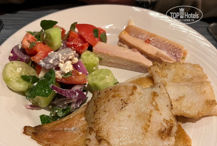 2. Питание хорошее, не скажу изысканное, но твердая 5. Очень порадовал круглосуточный ресторанчик с блюдами по меню, все готовили очень быстро и меню просто шикарное, всегда можно поесть стейк из лосося или полакомиться малосольной семгой. Я в восторге была от свежевыжатых соков, которые за завтраком можно выпить в ресторане, а в течении дня в баре у крытого бассейна. Обслуживание в основном ресторане тоже отличное, официанты уже узнавали в лицо, помнили, что мы пьем, приносили не спрашивая. В фойе прекрасная кондитерская, боже, где взять второй желудок?! Ходишь, смотришь, восхищаешься, а съесть не можешь-некуда! Пирожное, шоколад ручной работы, всякие печенюшки, а какая посуда шикарное. Респект!