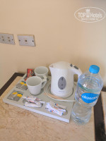 Вид из номера 1243 был просто шикарен, встречали рассветы, солнышко весь день, тепло от него и кондиционера. В общем, уютно и комфортно. Спалось отлично, удобный матрас, подушки. В уборной нормальная ванная, гели, шампунь, мыло, фен. Краны - спасибо, что дожили до конца отдыха))) Есть ТВ с парочкой каналов. Чайник, чайные пакетики, кофе, сахар, каждый вечер пили чай. Большие чашки как напоминание о доме, мелочь, а приятно) По бутылке воды оставляли каждый день. К уборке вопросов не было. Парень - уборщик - просто душка, приходил в удобное время, спрашивал "как дела, что требуется" убирался нормально.