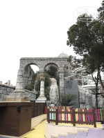 Отель в античном стиле, с огромной лесопарковой территорией. Когда попадаешь на территорию она поражает своей архитектурой. Главный бассейн как будто встроен в имитированный античный город и колоны, выглядит это стильно и интересно.